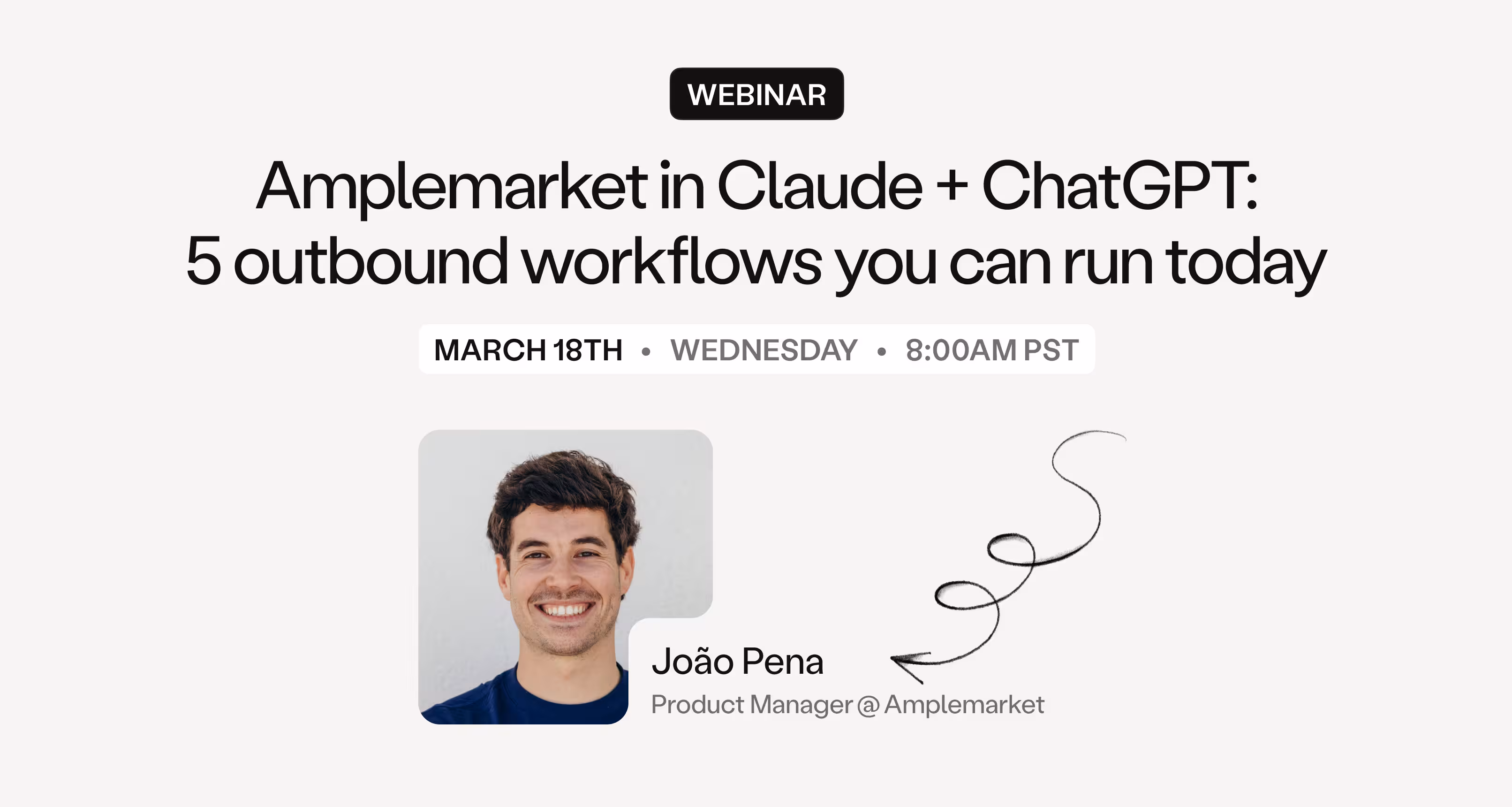 Sign up now to learn directly from JoΓ£o Pena, Senior Product Manager at Amplemarket, as he reveals five outbound workflows that will elevate your sales process in Claude and ChatGPT.
